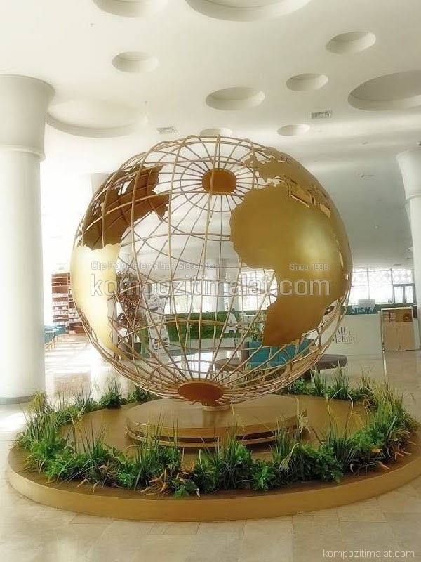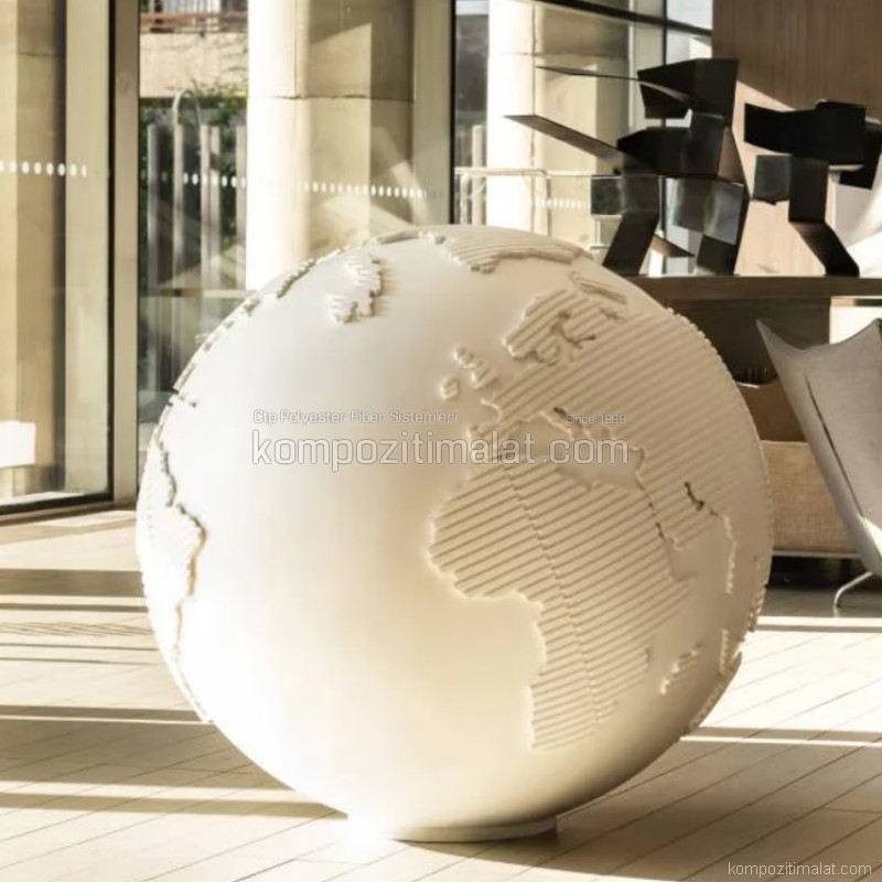 Büyük ebatlı kompozit dünya küreleri, mekânlara yalnızca estetik bir değer katmakla kalmaz; aynı zamanda projelerin algısını güçlendiren, kurumsal kimliği vurgulayan etkili bir görsel iletişim aracıdır. Firmamız, bu özel uygulamaları standart bir dekoratif ürün anlayışının ötesinde ele alarak, her projeyi kendine özgü bir tasarım ve mühendislik süreciyle hayata geçirmektedir.
