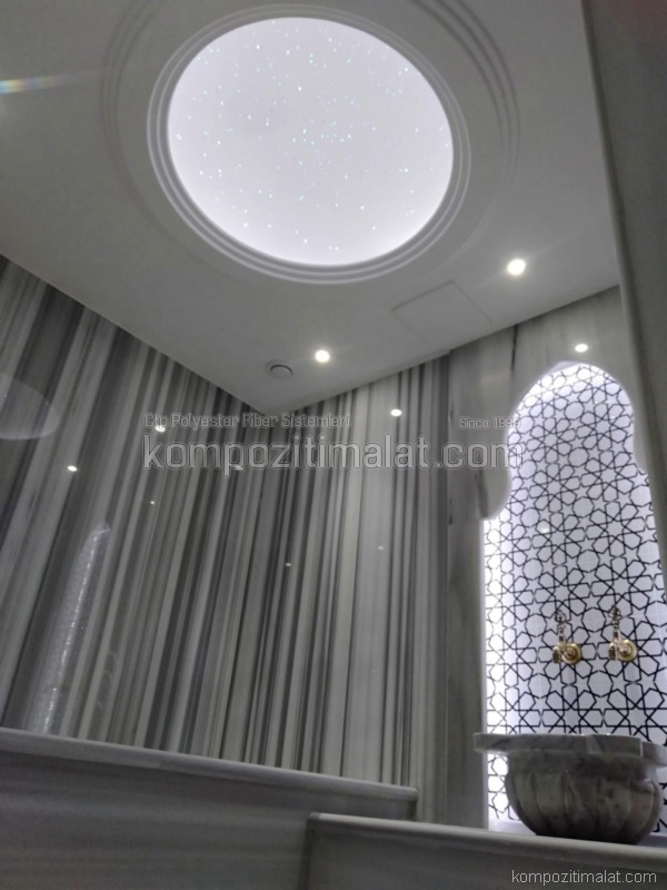 Cam elyafı ile güçlendirilmiş CTP kompozit yapı; yüksek mukavemet, düşük ağırlık ve üstün çevresel dayanım özellikleriyle öne çıkar. Bu yapı sayesinde CTP hamam tavanları; su buharına, sıcaklık değişimlerine ve kimyasal temizlik ürünlerine karşı direnç gösterir. Korozyona uğramayan yüzey yapısı, uzun yıllar boyunca bakım gereksinimini minimum seviyede tutar. Ayrıca, CTP malzemenin pürüzsüz yüzeyi küf ve bakteri oluşumunu engelleyerek, hamam gibi hijyenin kritik olduğu alanlarda sağlıklı bir kullanım ortamı sağlar.